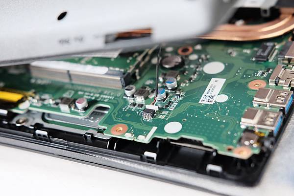 DDR4的記憶題插槽共有2組, 位於中間偏右下方, 原機標配已插上1條4GB了, 可以再多插一條DDR4的記憶體; 本機型最大可擴充到32GB DDR4記憶體.